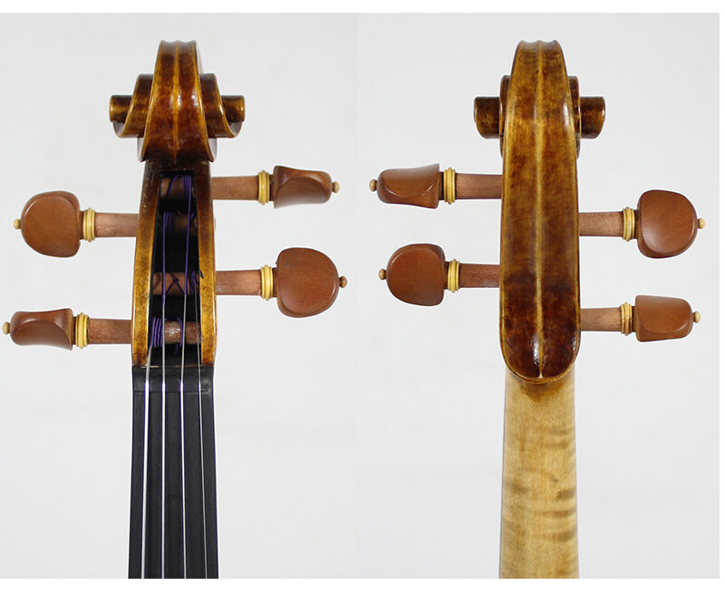 Hard-carved ebony pegs, tailpiece