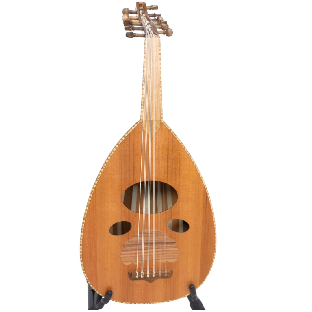 A special 2024 new edition, this oud has an upgraded face, featuring a superb cedar top. This oud has a special acoustic enhanced Shellac varnish, to protect the oud and enhancing the sound. A Shami oud with real Arabic sound from the professional line of Zeryab. Made by the famous family ‘Ali Khalife’.